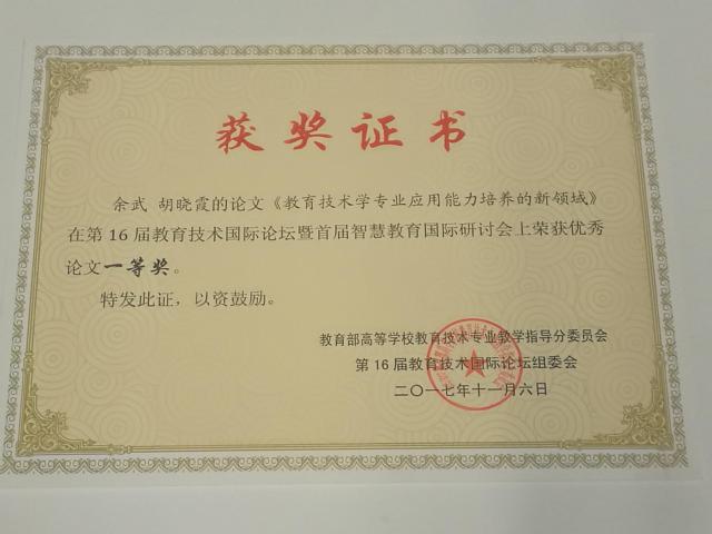 我中心师生参加第十六届教育技术国际论坛 发布时间: 2017-07-11 访问次数: 13 2017年11月5日—6日,由教育部高等学校教育技术专业教学指导分委员会主办,江苏师范大学教育学江苏省优势学科承办的第十六届教育技术国际论坛(IFET2017)暨首届智慧教育国际研讨会在江苏省徐州市召开。教育部科学技术司司长雷朝滋,中央电化教育馆党委书记、馆长王珠珠,教育部高等学校教育技术专业教学指导分委员会主任、华中师范大学校长杨宗凯等与来自全国150多所高校的1000余名代表参会。我中心副主任卢锋副教授、教育技术学专业负责人余武教授和部分研究生参加了此次论坛。 本次论坛中,与会代表围绕会议主题----“走向智慧时代的教育创新发展”展开了深入的讨论,彼此交流创新思想,分享最新研究成果。我院余武教授撰写的论文《教育技术学专业应用能力培养的新领域》荣获优秀论文一等奖,并受邀在分论坛作主题报告,得到了与会专家的好评和同行们的共鸣。 教育技术国际论坛是教育部高等学校教育技术专业教学指导委员会主办的品牌性国际性学术会议,此前已连续举办了15届,是海内外教育信息化领域专家学者专业人士思想碰撞、学术研讨、实践切磋、信息共享的一个重要平台。我院师生积极参与论坛的各项活动,在与同行学习交流的同时,也扩大了我院的学术影响力。