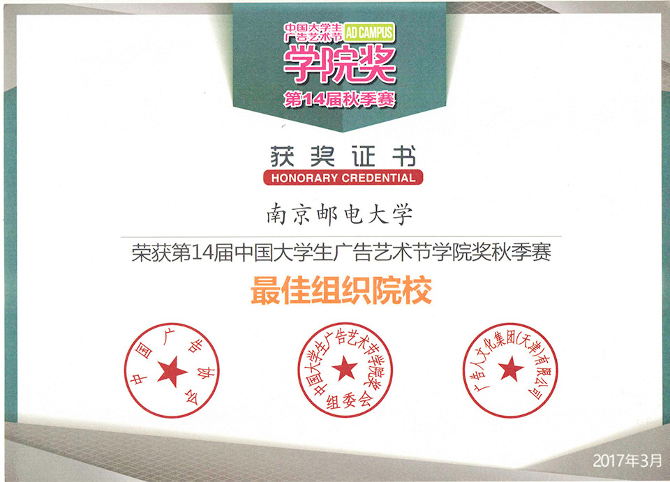 中国大学生广告艺术节是由中国广告协会主办的大学生广告艺术大型活动,内容涵盖学术研讨、创意大赛、娱乐评选以及人才交流等方面。学院奖是是中国大学生广告艺术节中的核心项目,该奖项目前已历经九届,在全国各高等院校中深入人心,且其影响力已经从高校延伸至广告行业,成为广告行业遴选人才,企业获取杰出创意的重要途径。